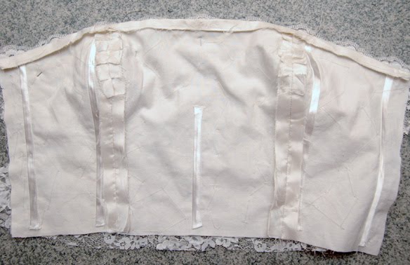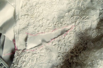 Now I will have to do the same on the back pieces, but hopefully it will be easier since they are much flatter. I rather not make any more cut-out darts in the lace!