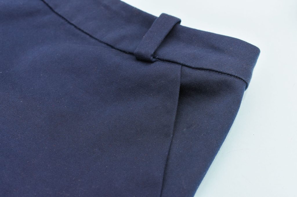Since I could skip the sewing samples and fitting process I had more energy to put into the sewing part. I aimed to do really high-quality sewing, which I’m documenting in a pants sewing tutorial series. For instance, the waistband has enclosed belt loops and no visible topstitching (it’s all done in the ditch).