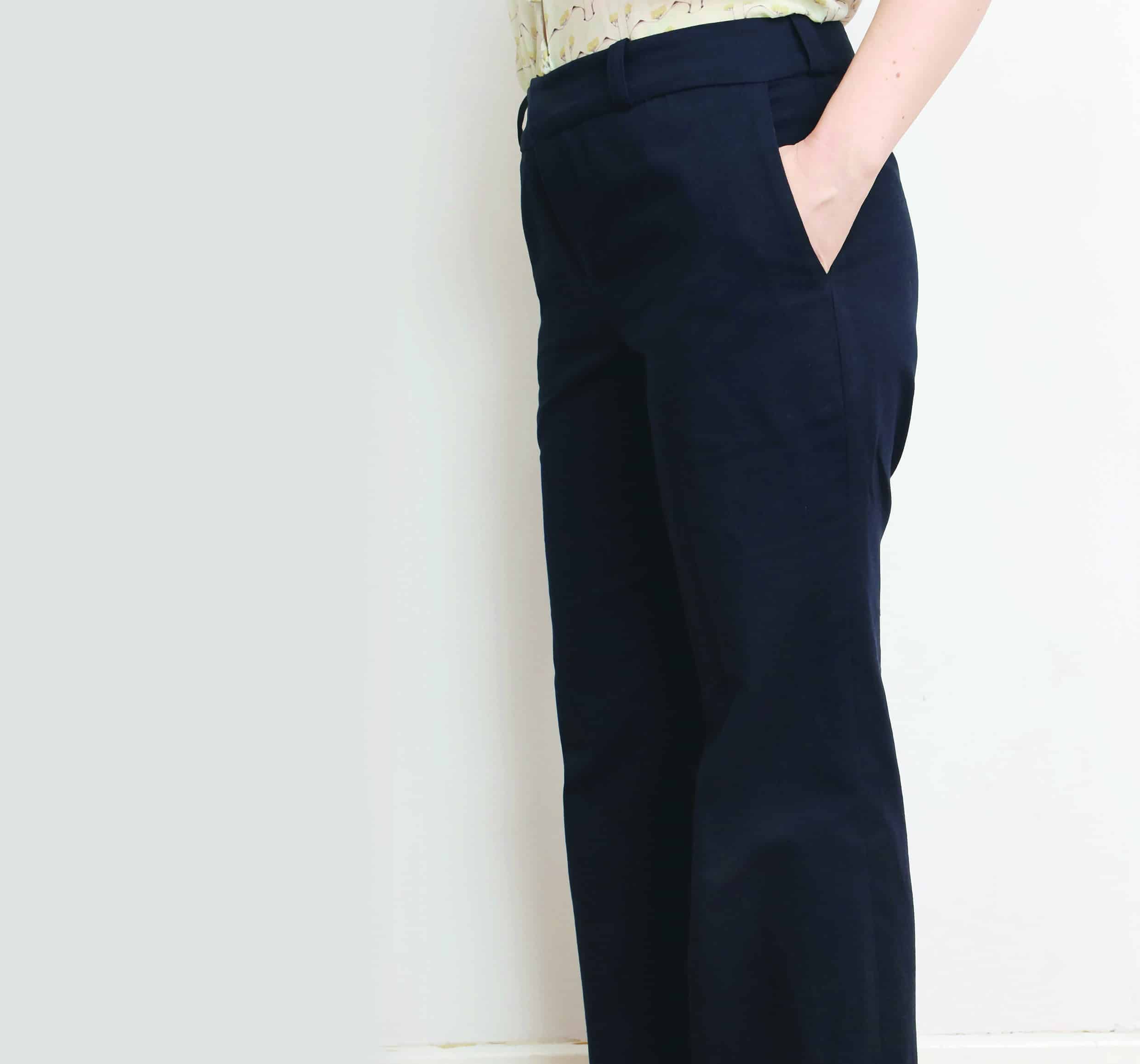 The pants are fitted around the hips and upper tights and from the knee down they are straight legged. I have tried sewing so many different trouser shapes over the years and I’ve found that this is the shape that fits me the best. My legs can look a bit short and stocky in some trousers, but I don’t feel that this is an issue with these pants.