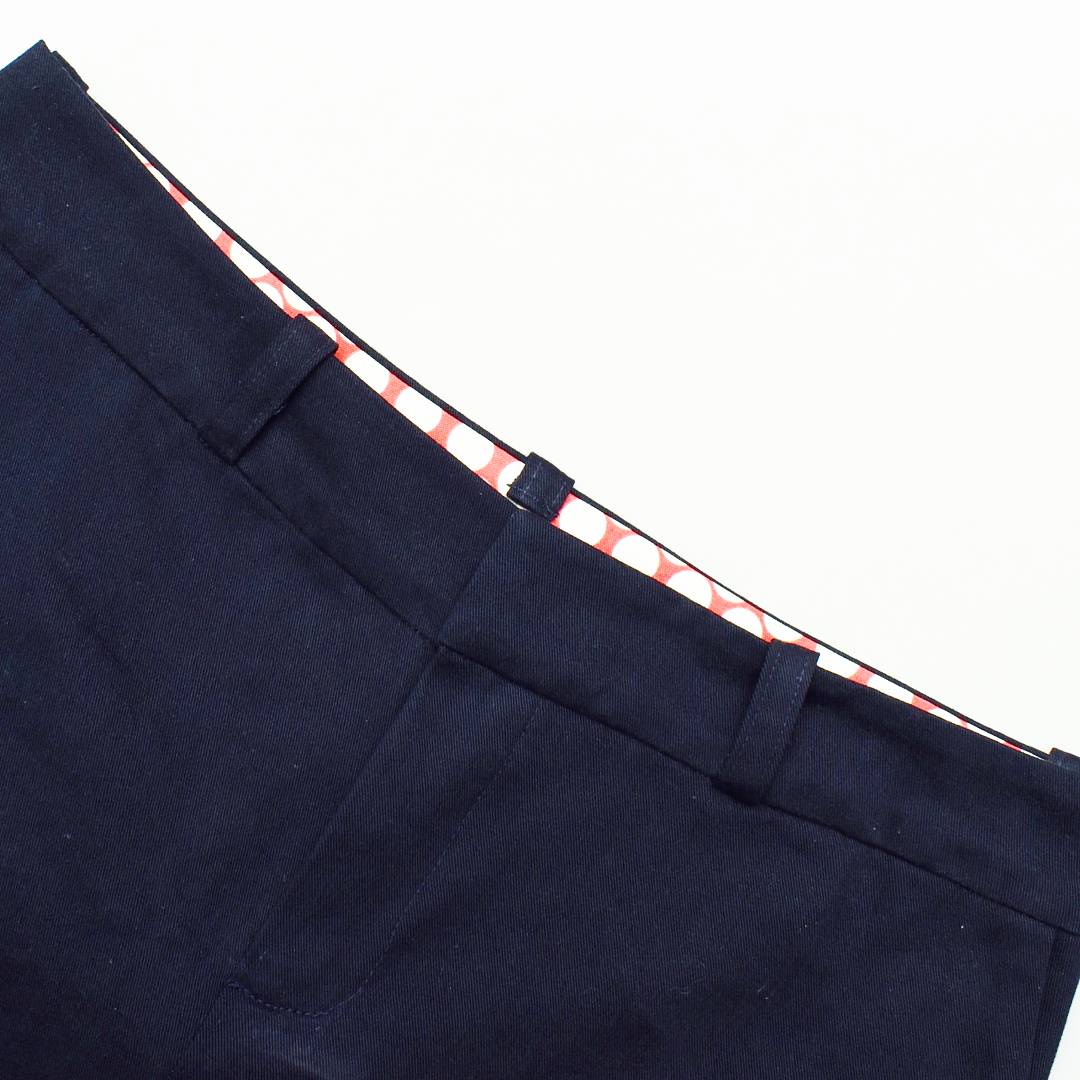I added contrasting fabric for the waistband facing to make it more fun! It is a cotton quilt fabric from Amy Butler. Quilt fabrics are really great for these kind of details!