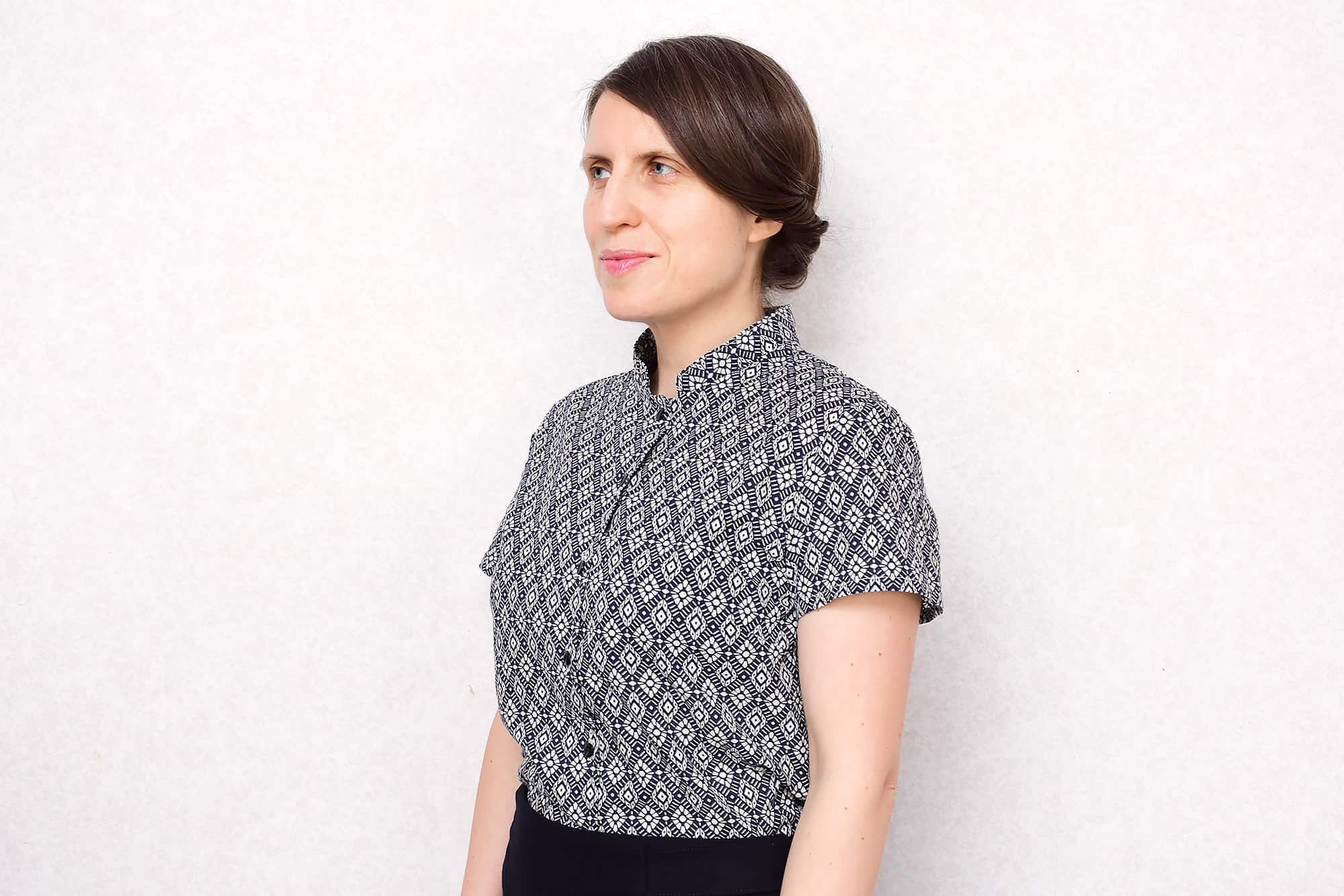 The blouse has such simple details, just bust darts and the placket is just a folded facing, no separate pattern piece. The only alteration I did is to remove ease from the sleeves since Burdastyle used to add an insane amount of ease to their set-in sleeves, even on knits! And unwanted gathers around the sleeve head is a look that screams homemade, and not in a good way! If you are curious how to remove excess ease from the sleeves I highly recommend the method Sandra Betzina uses in her book Fast fit (affiliate link).