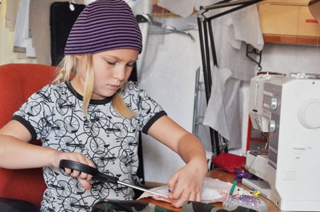 This weekend me and the youngest daughter finished the fourth version of Burdastyle’s Diana bag. Her older sister made one two years ago and since then the young one has been asking for one too. You can imagine how much parental guilt that has been building up during this time. But now we finally got our act together. Anja did most of the sewing, while I helped with the fiddly bits, like pressing and sewing the darts.