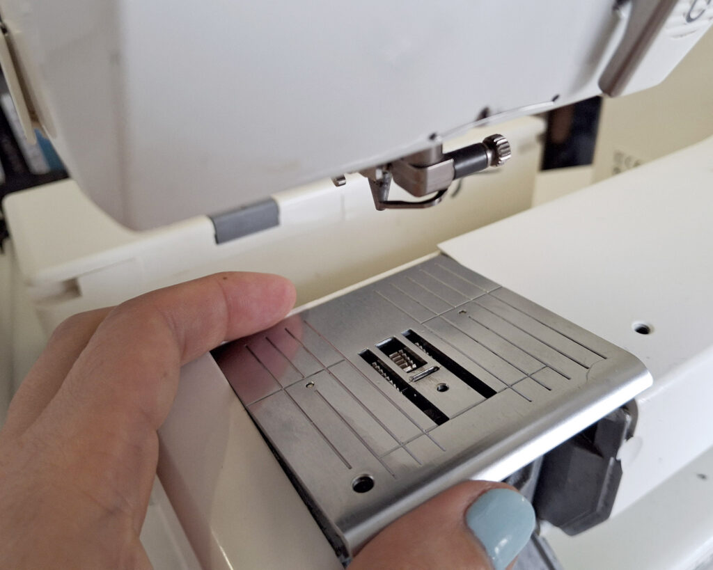 If there is thread, dust or lint underneath the metal needle plate, it can cause feeding issues, and the fabric might jam up during sewing. To prevent this, you need to clean the area underneath the plate regularly.
