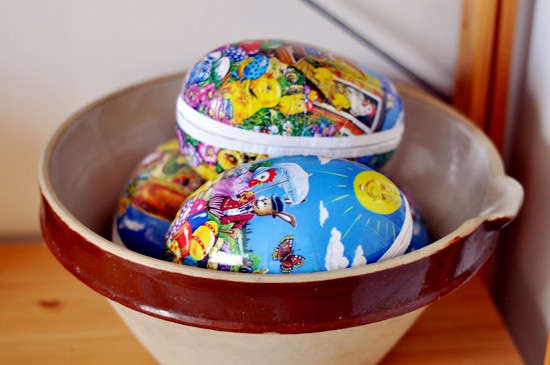 Those handpainted eggs are beautiful! Sure beats those tacky plastic eggs that are ubiquitous at American Easter celebrations (which I happen to use, too). But no more, for me. I am inspired to do something a little more pretty, a little more meaningful.