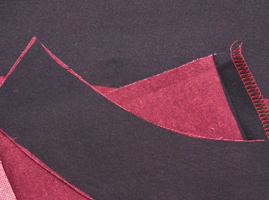 Stitch close to the edge, no more than 6 mm (¼”) away from the edge. Use the edge of the presser foot as a guide to stitch a narrow seam.