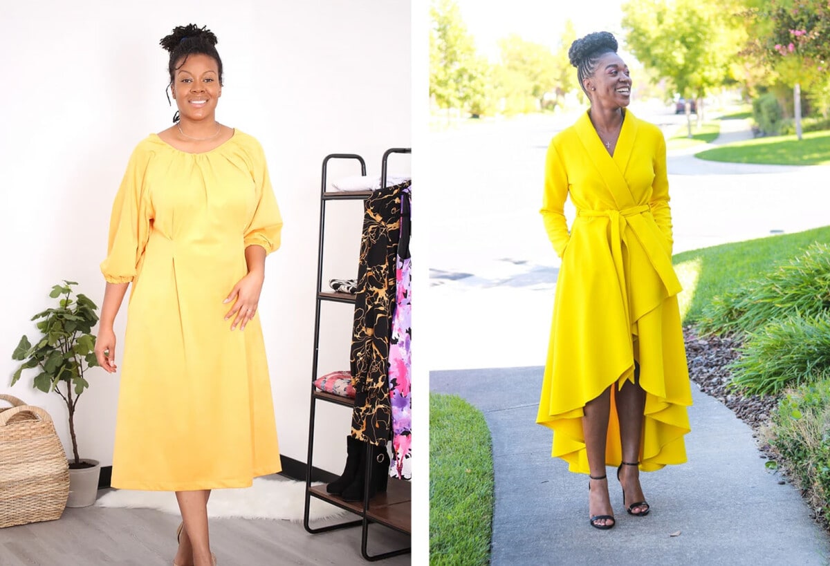 Grace Puffy Sleeve Dress by Style Sew Me & Tory Wrap Coat by Monto Mayo.