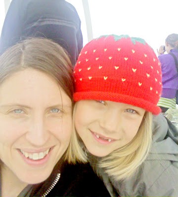 Anja trying out the double decker bus.