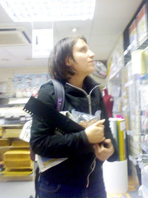 Anja posting a postcard to her school.
