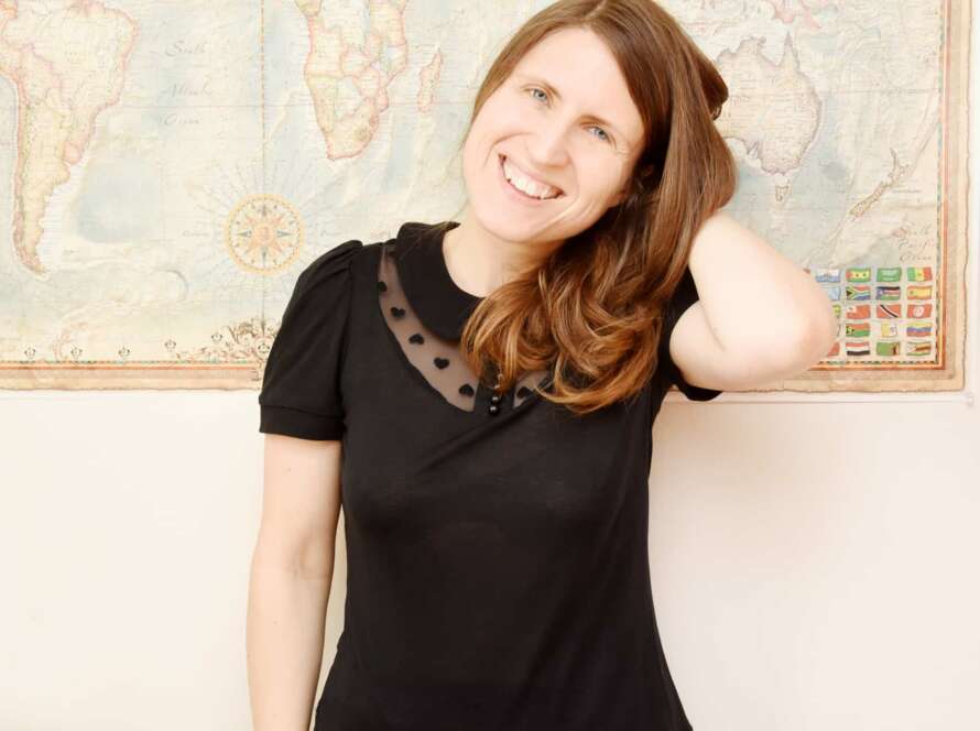 Here you can see the gathers up-close. If you are curious about how to add gathers to knit garments while also retaining the stretch, check out the 4 Ways to Sew Gathers on Knits tutorial I´ve done.
