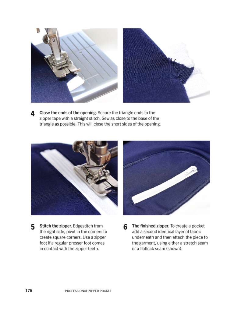 Illustrated methods for bindings, elastic openings, waistbands, pockets, gussets, thumbholes and zipper pockets.
