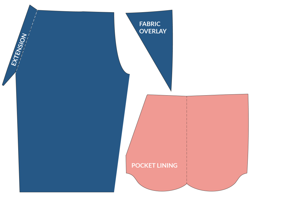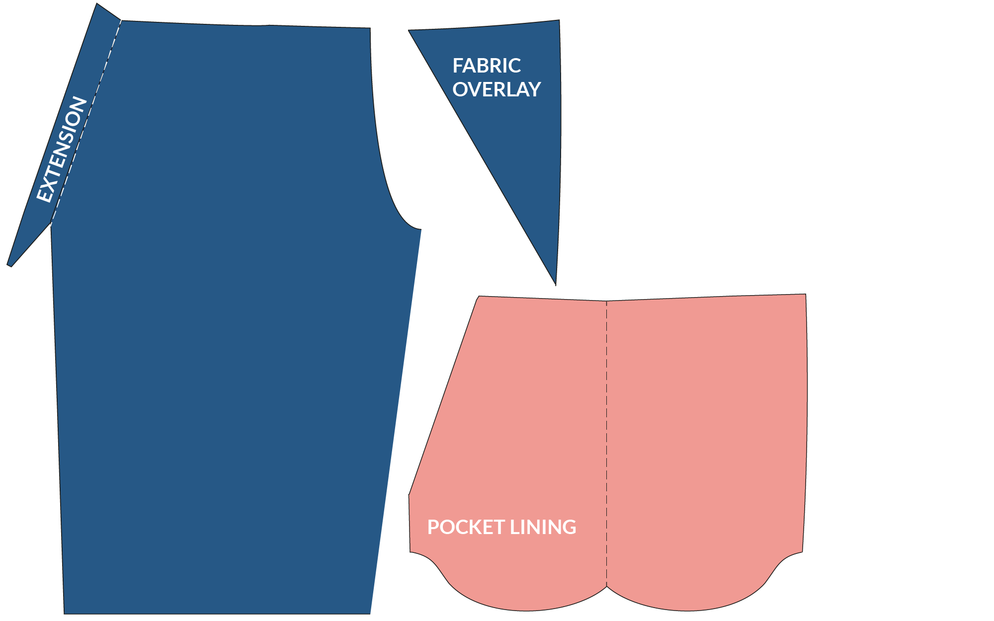Depending on the original pattern you might need to draft new pocket and extension pieces. Luckily you can use the original pattern and just do some minor tweaks to create the new pieces.