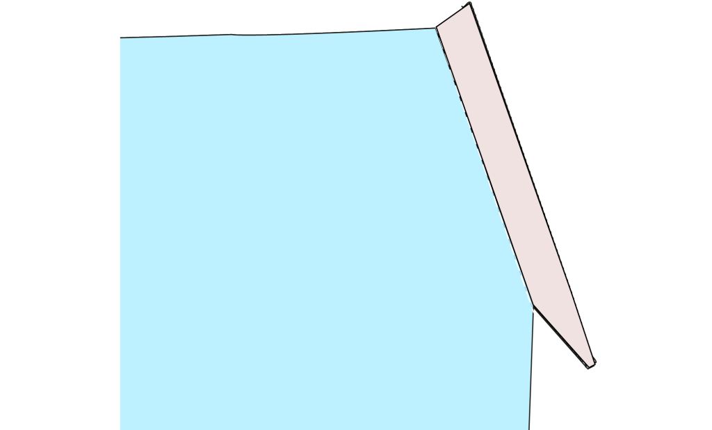 To hide the lining fabric you also need to add an overlay patch on the inner pocket lining. Draft the piece over the pocket lining bag. Extend the top of the overlay about 5 cm (2″) beyond the pocket opening to make sure no lining will be visible.