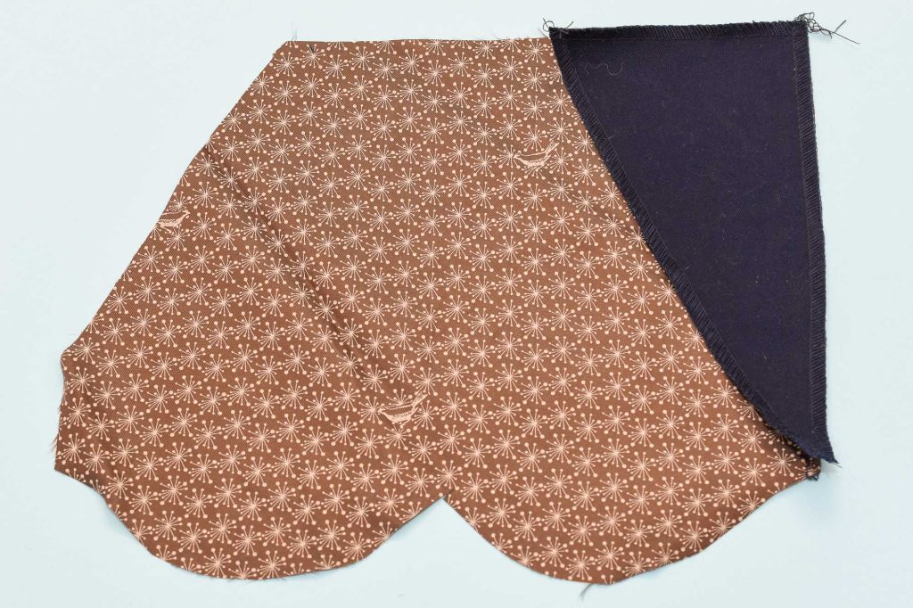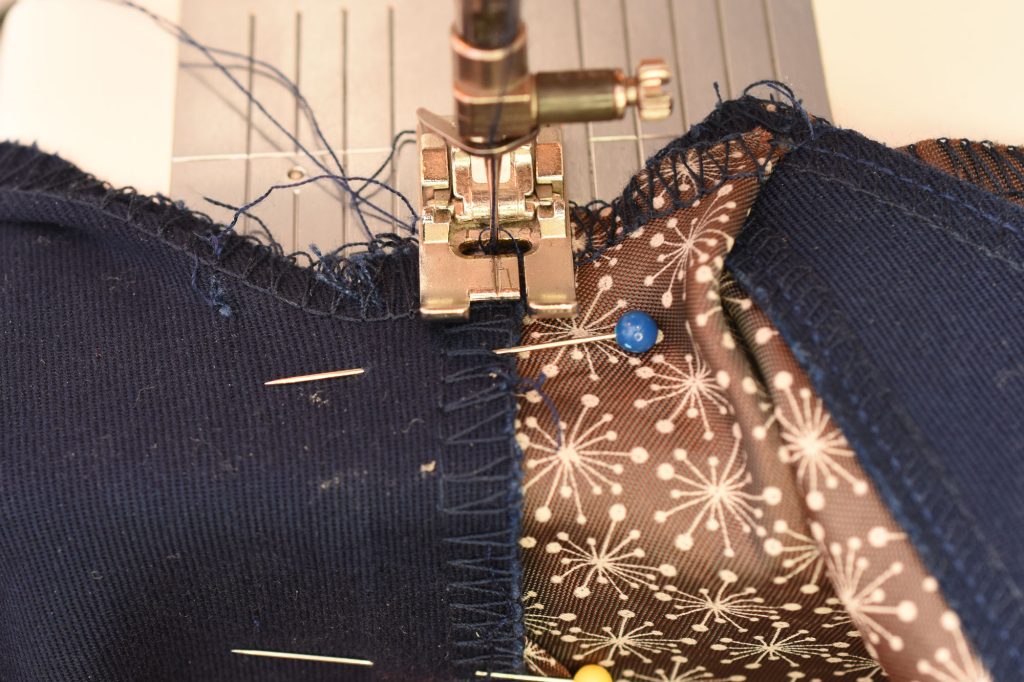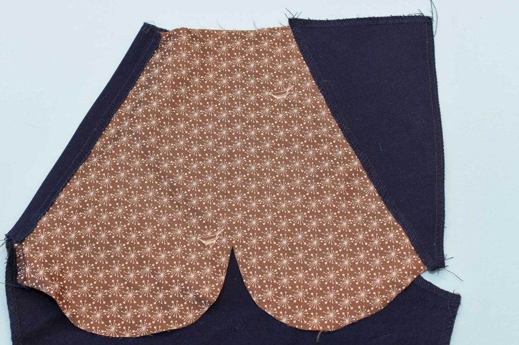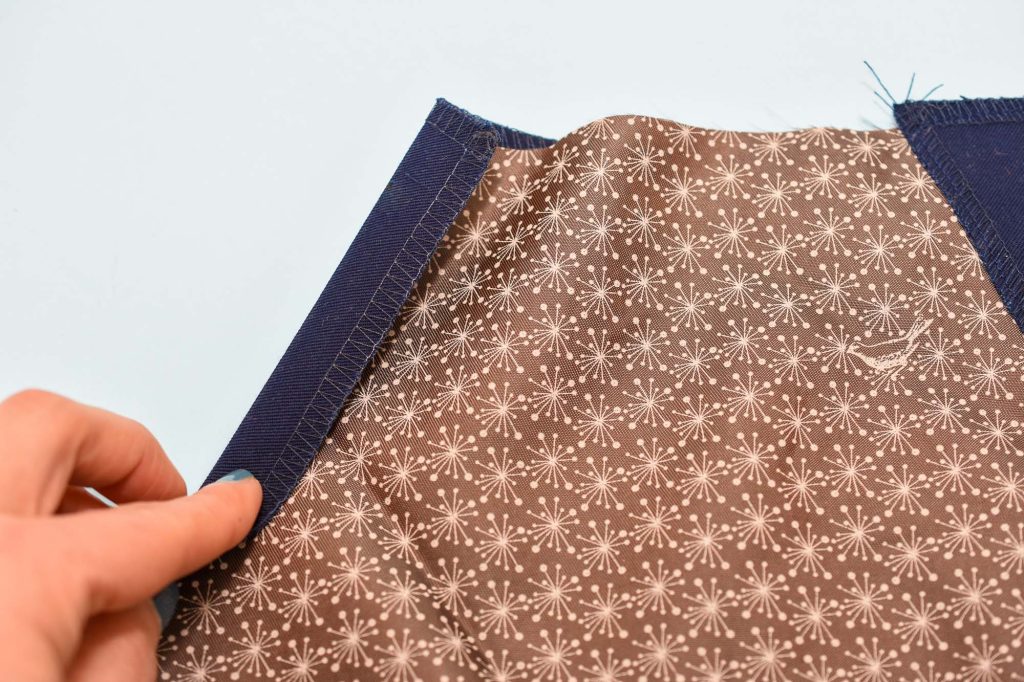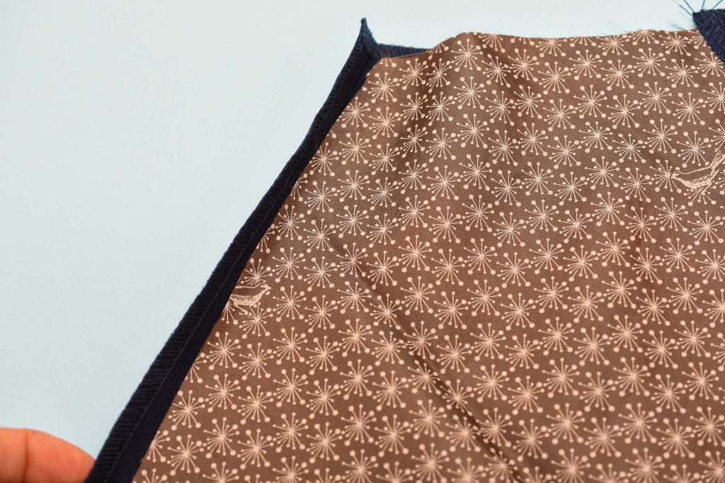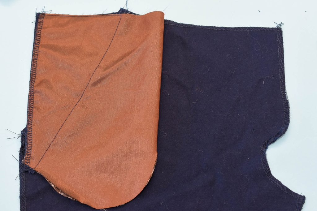 Fold over the pocket lining, right sides facing in preparation for sewing the bottom and finishing the pocket.