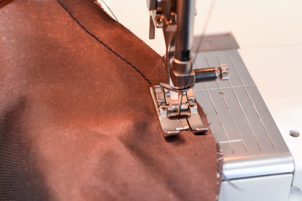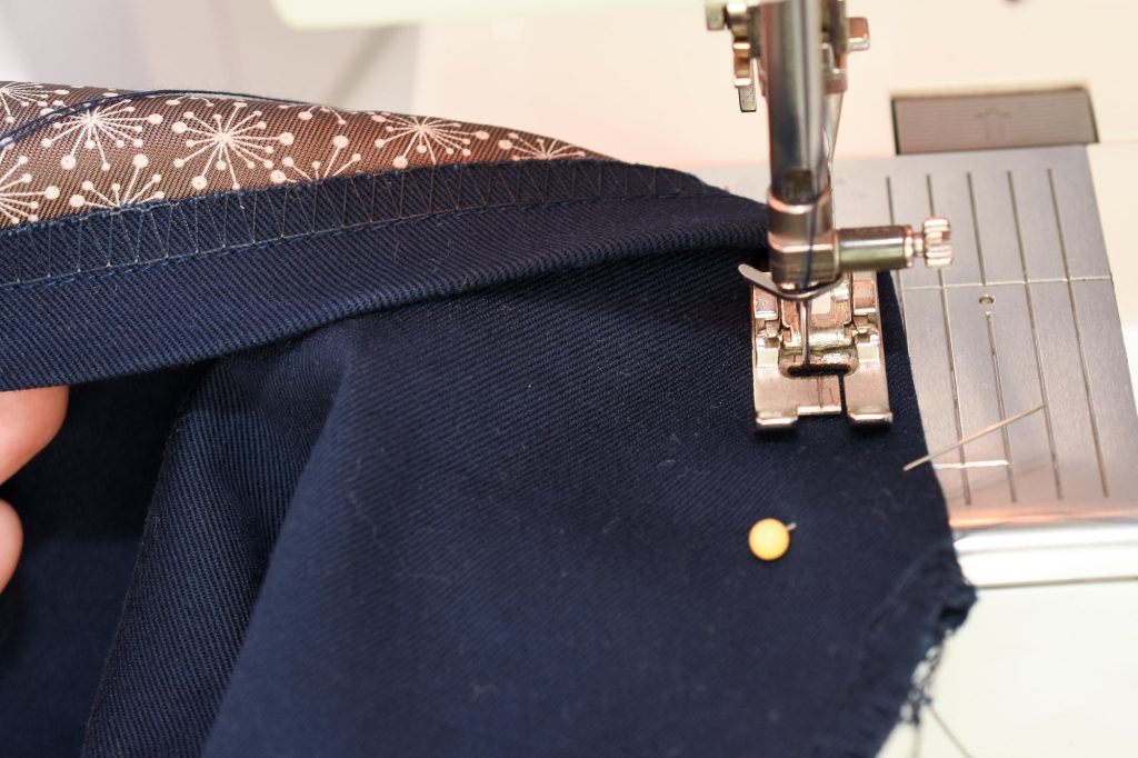 Sew along the lower edge of the pocket to close it. We are doing this before overcasting to save time and remove even more bulk.