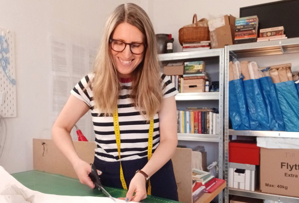 I originally made this t-shirt as part of a video tutorial for sewing t-shirts (on YouTube) but it’s become a real wardrobe favourite! Here I’m in my sewing studio wearing the top and working on a sample for my next sewing pattern.