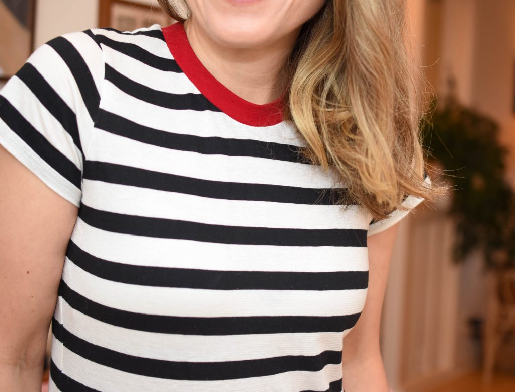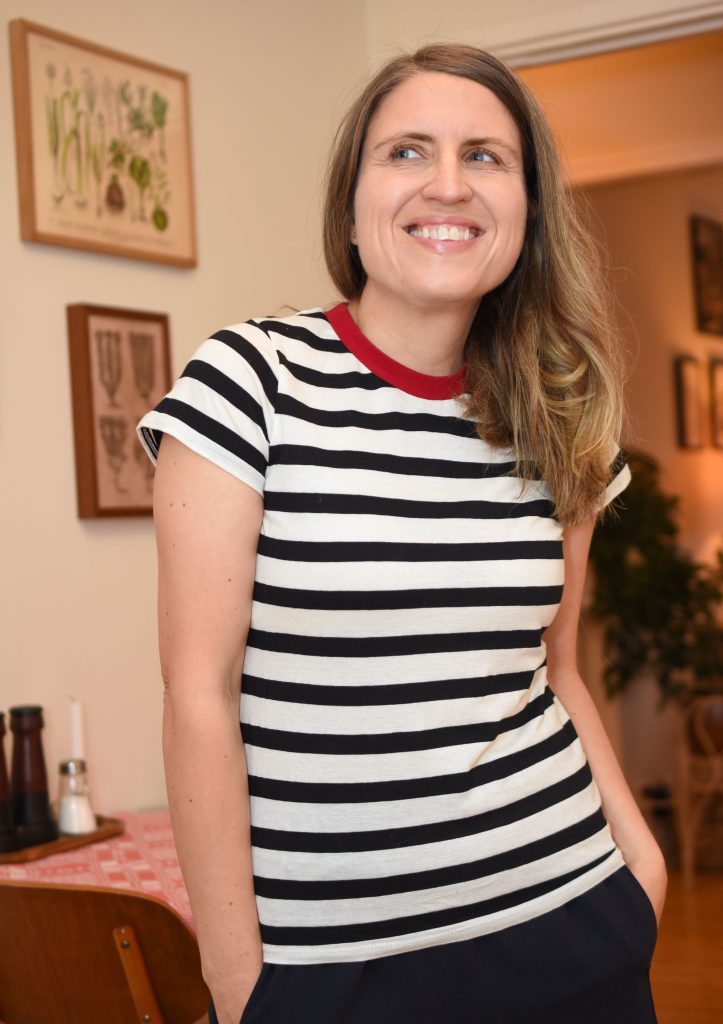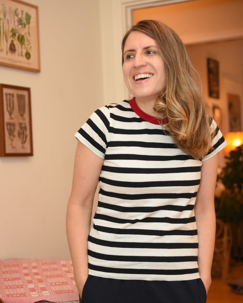 You can never have too many striped tees, right? This top with a contrasting neckband is inspired by a style I saw in a COS store.
