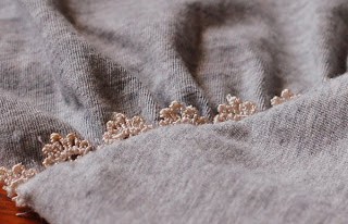 I have been doing some experiments with tea dying again. The colour that earl grey tea creates is so wonderful, a cream hue with a subtle pink touch that looks very natural and harmonious. The cotton lace was white when I started and I think it looks much more interesting now. The lace will end up on a grey top in organic cotton.