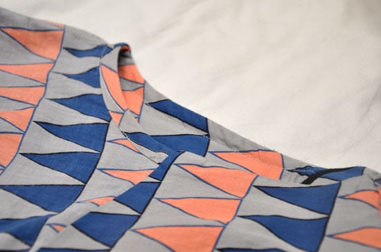The top turned inside out, Notice the bias binding and double layer yoke. Instructions for how to bag the yoke in this manner is found in the book Sewing secrets from the Fashion Industry (can be found in my book review section.