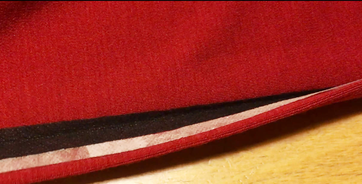 Here is how the placket looks inside before topstitching. Notice the black interfacing and I also used wondertape (Amazon affiliate link) on the seam allowance to keep the fabric in check (the white glue strip that is water soluble).