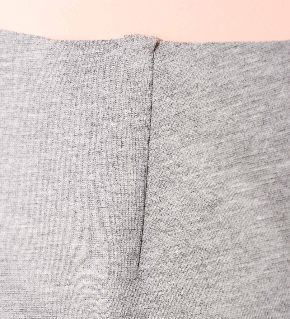 The finished dart. As you can see it is very flat with no puckers or dimples. The key steps for a great dart are to finish sewing at the very edge of the tip and to press properly.