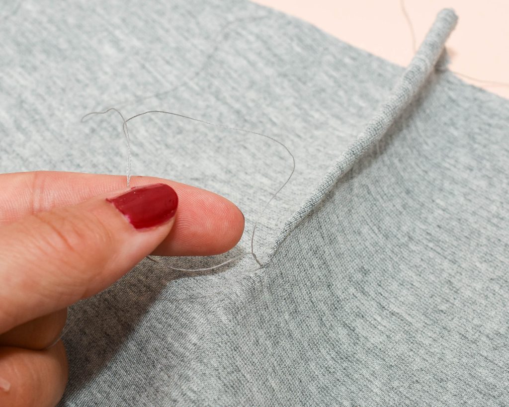 Lift the presser foot and remove the pants. Cut the threads, leaving 10 cm (4″)-long tails.