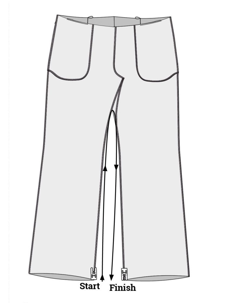Finish at the other leg opening.