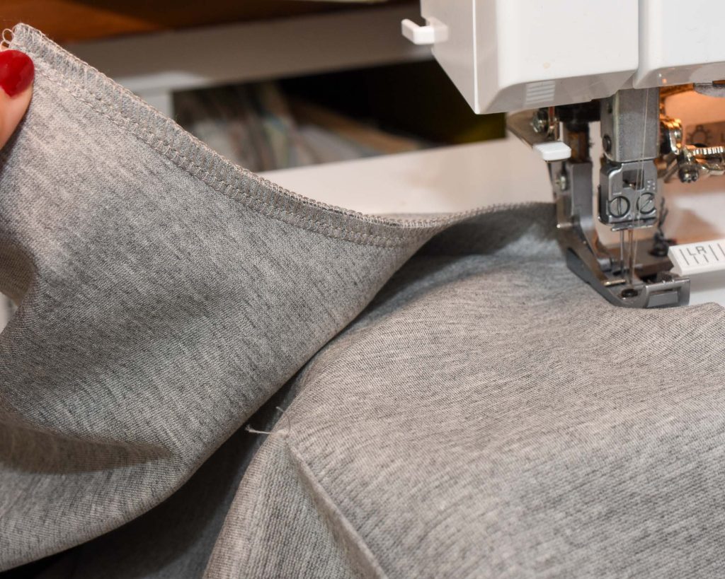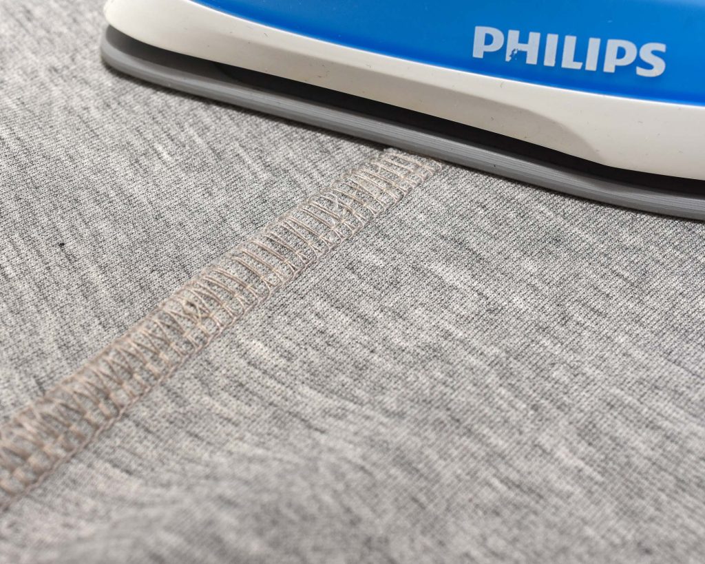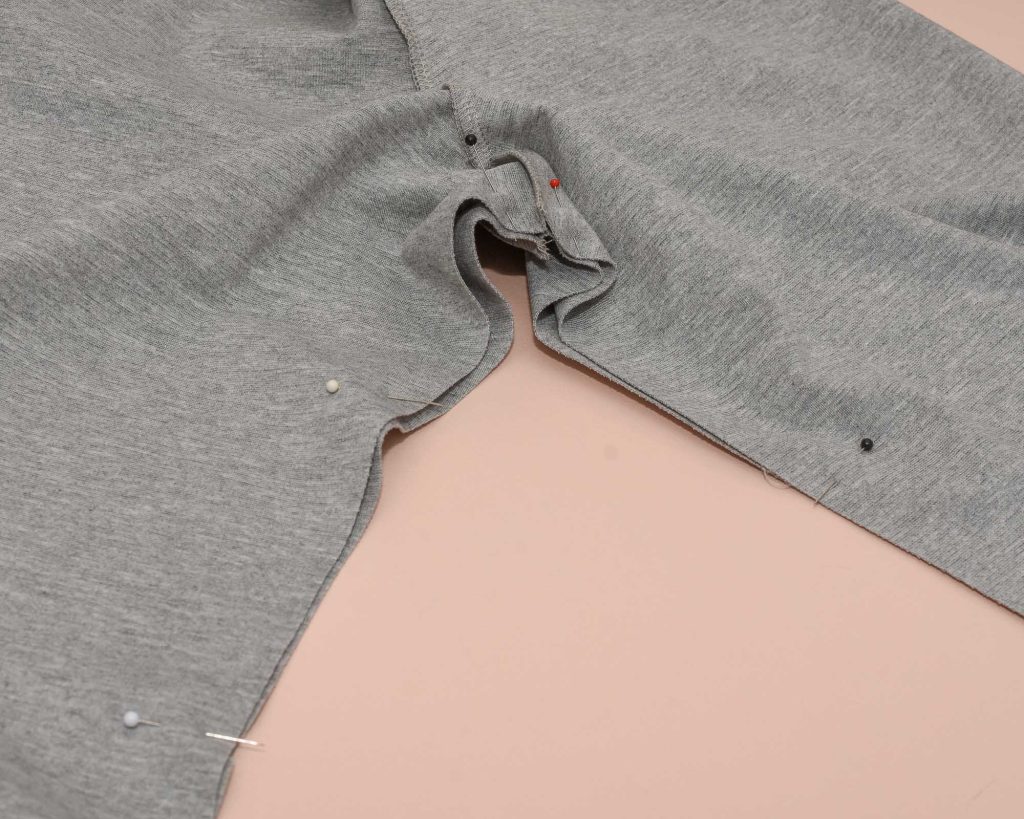Time to join the pieces together to create the legs of the Vide Knit Pants Sewing Pattern. I’m showing a flat assembly method in this tutorial, which differs from the traditional sewing method used for most woven pants. I think it gives more control and makes pressing easier, but you can of course sew the Vide pants like regular trousers too.