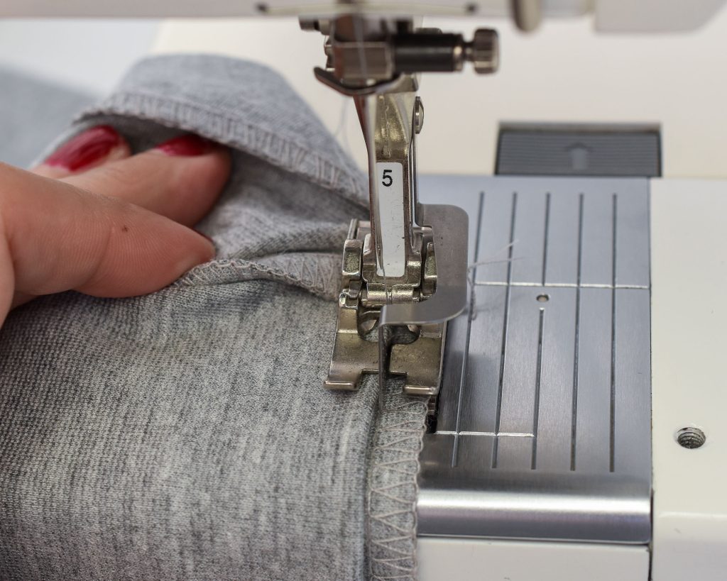 For casual garments I just topstitch with a narrow zigzag stitch to finish knit hems, but any garments for more formal settings I use the invisible hem finish for sleeve hems as well as trousers and skirts.