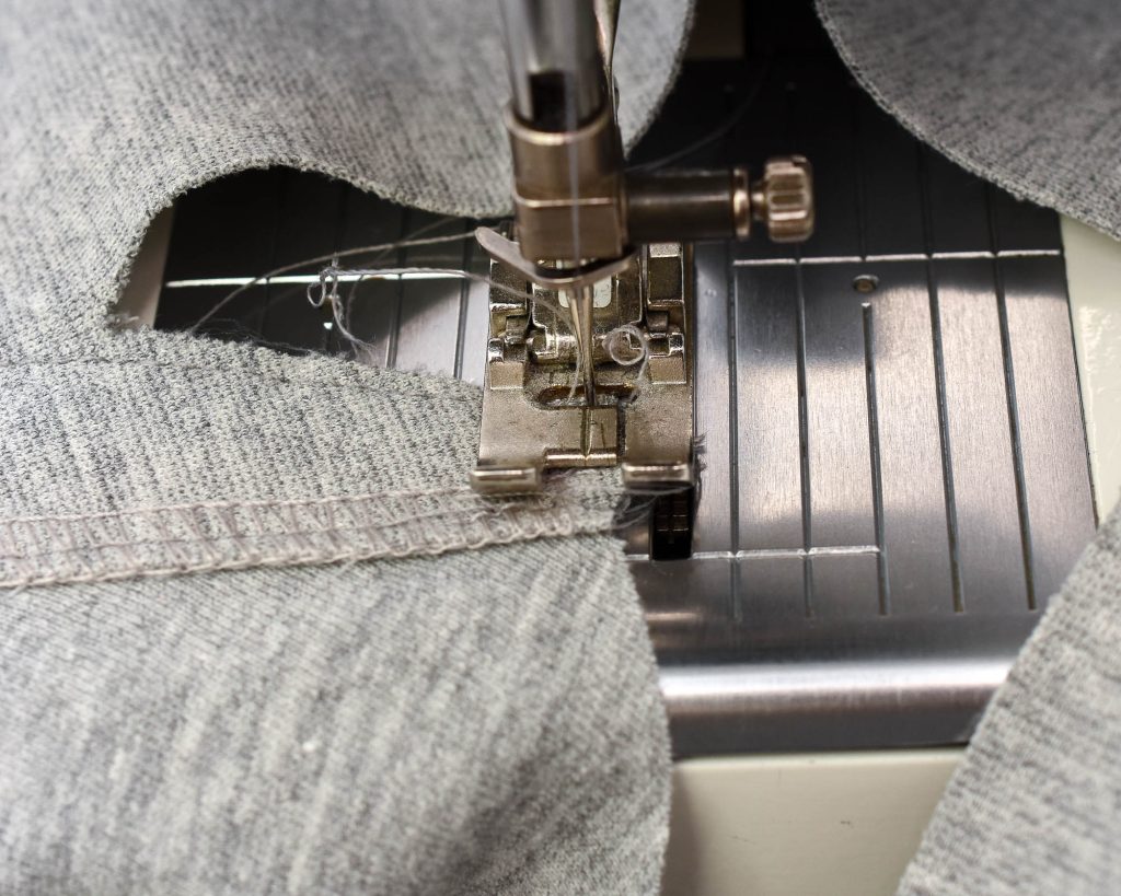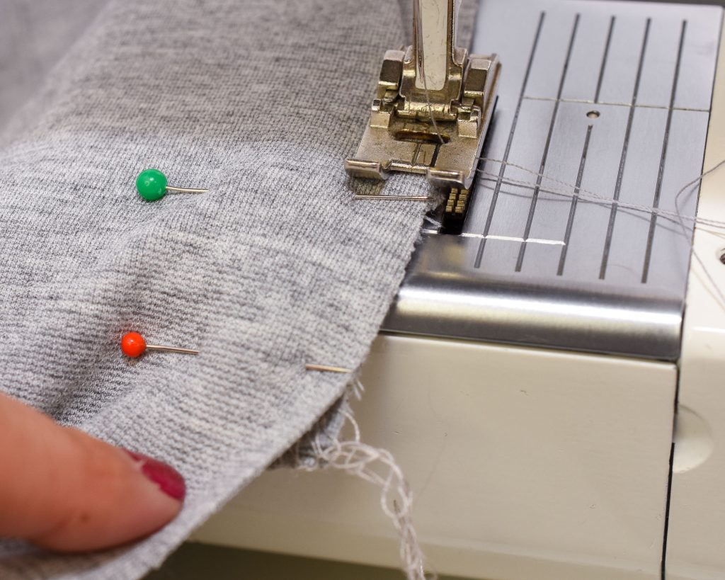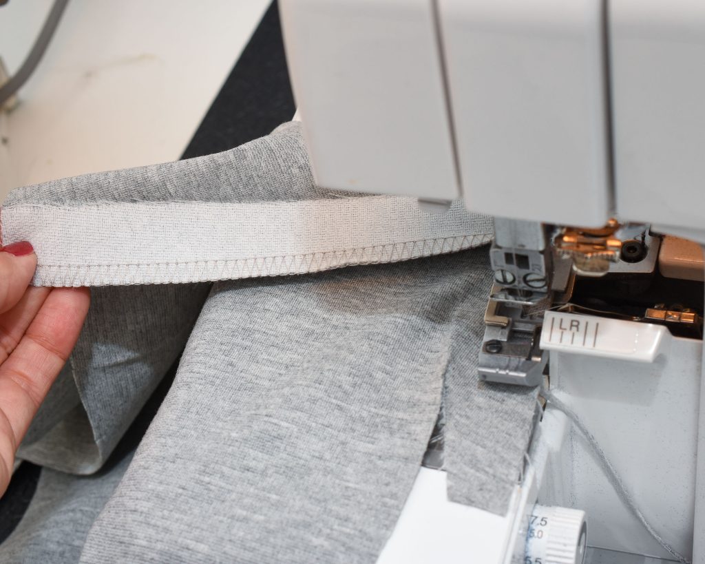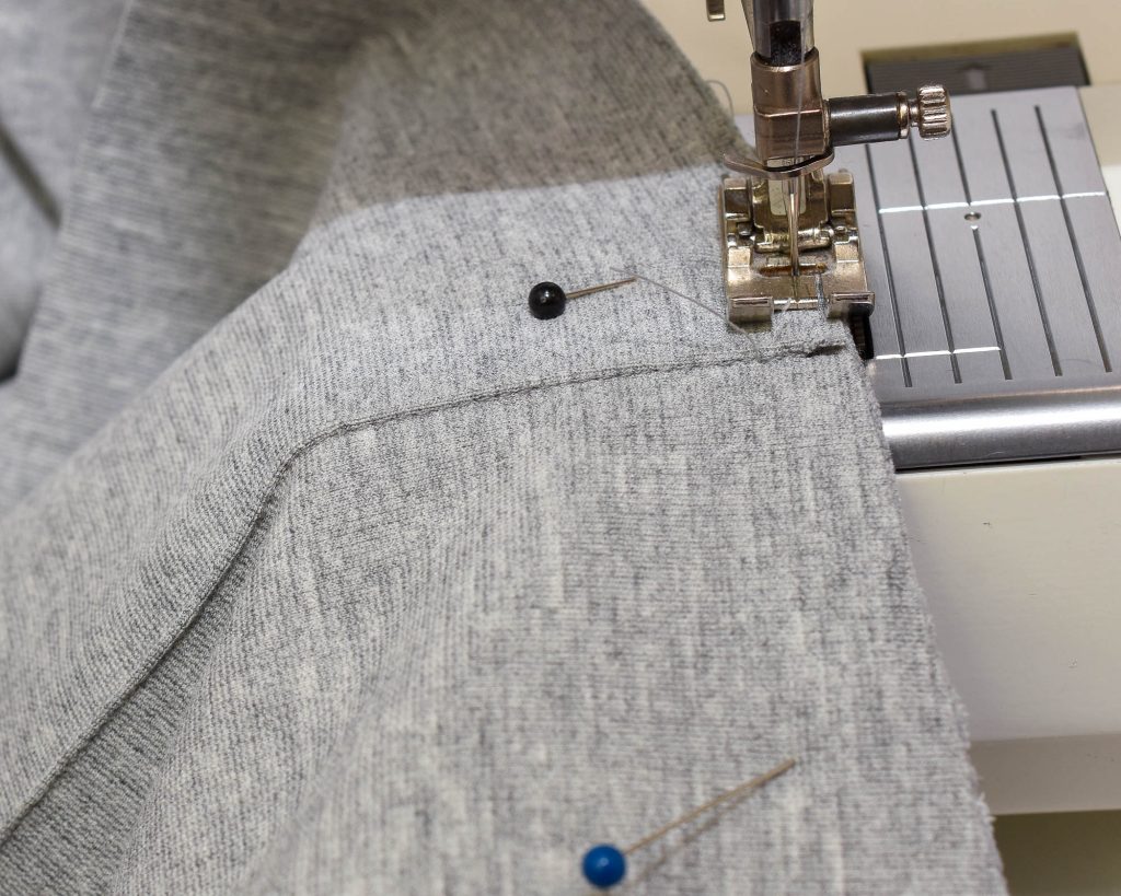 Stitch along the edges to close the pocket. Use a serger overlock seam or a narrow zigzag stitch. Make sure you don’t pull the pocket when sewing around the round corner as this can cause the seam to stretch out.