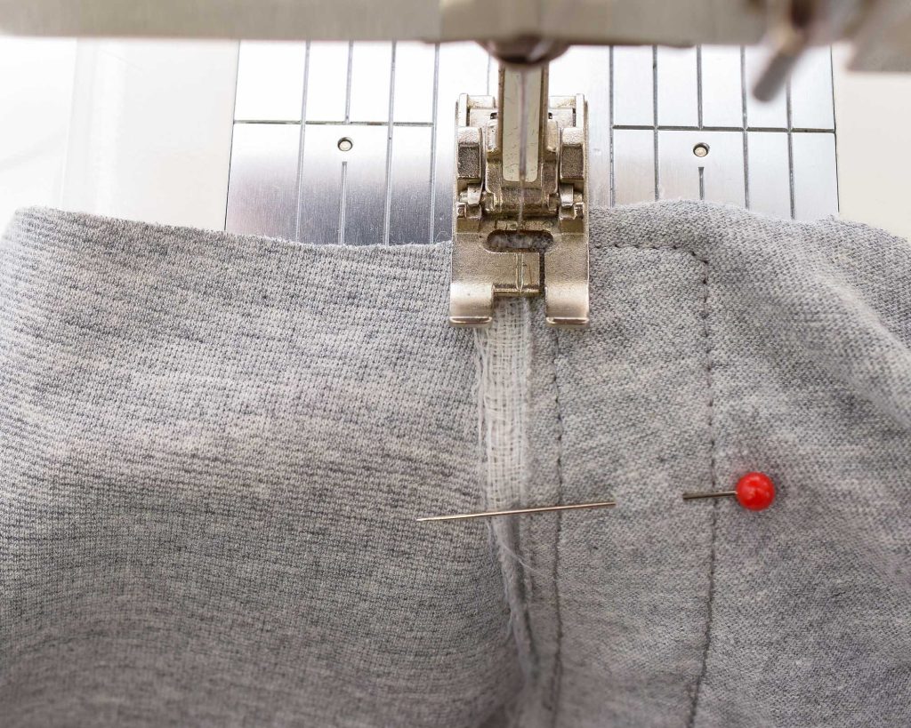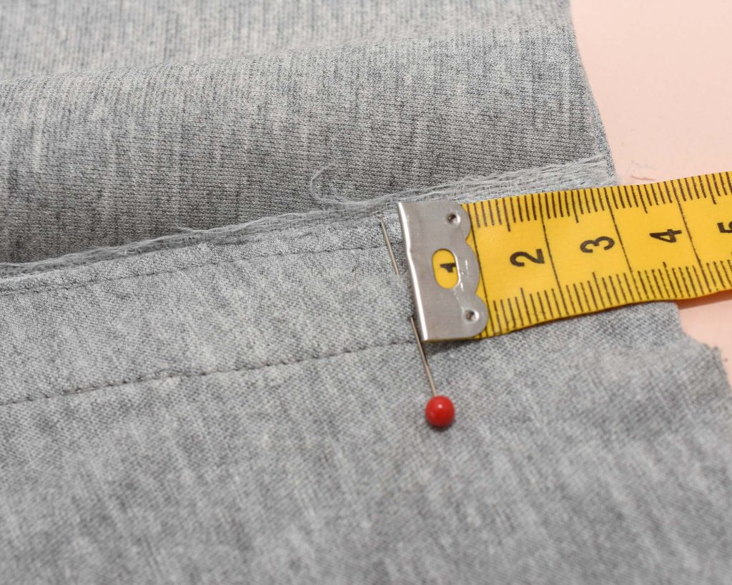 Measure and mark the seam length. The distance from the waistline should be around 3 cm (1¼”). Place a pin where the seam should end.